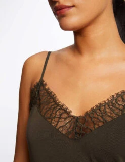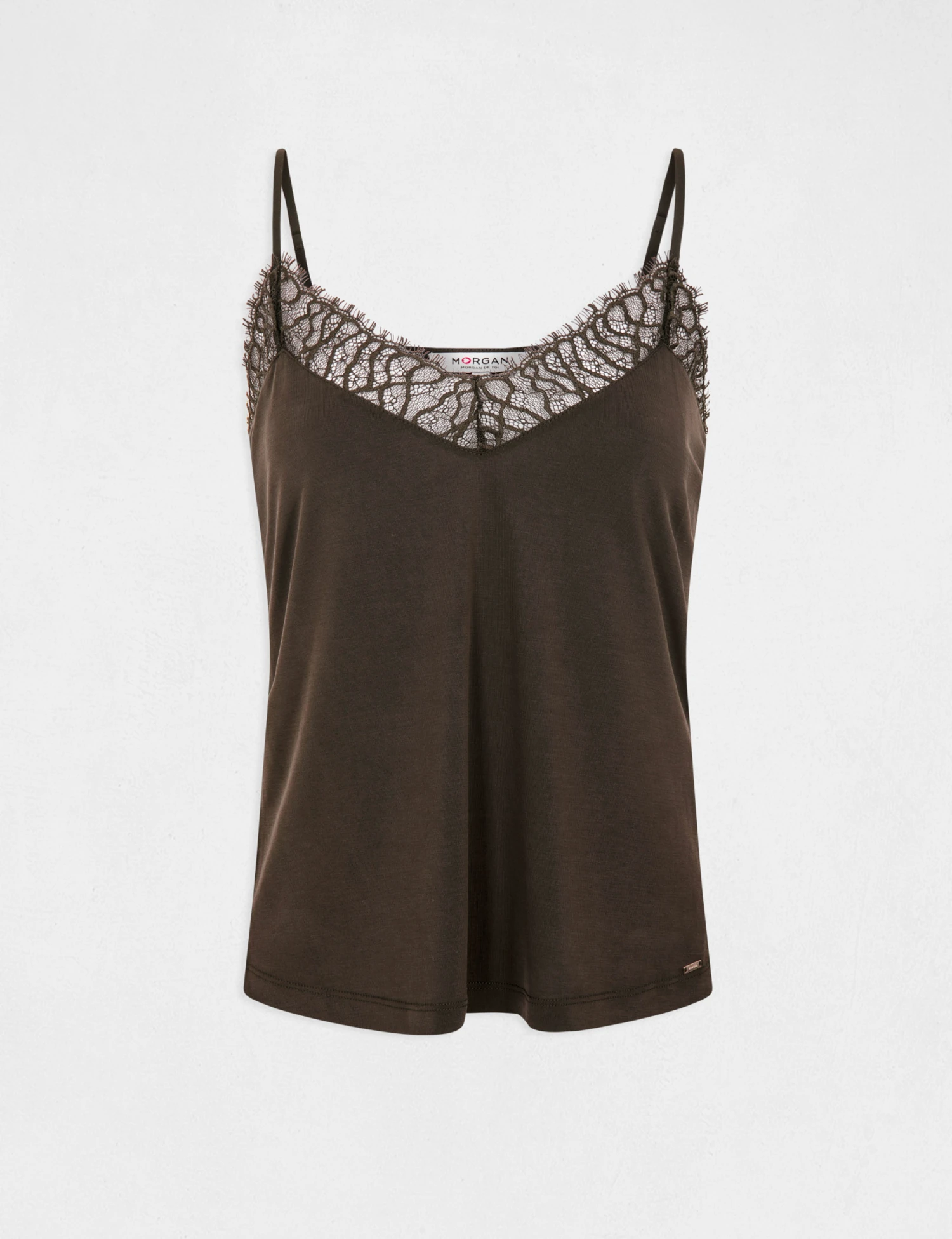 Empiècements dentelle avec bord festonné et franges à l¿encolure