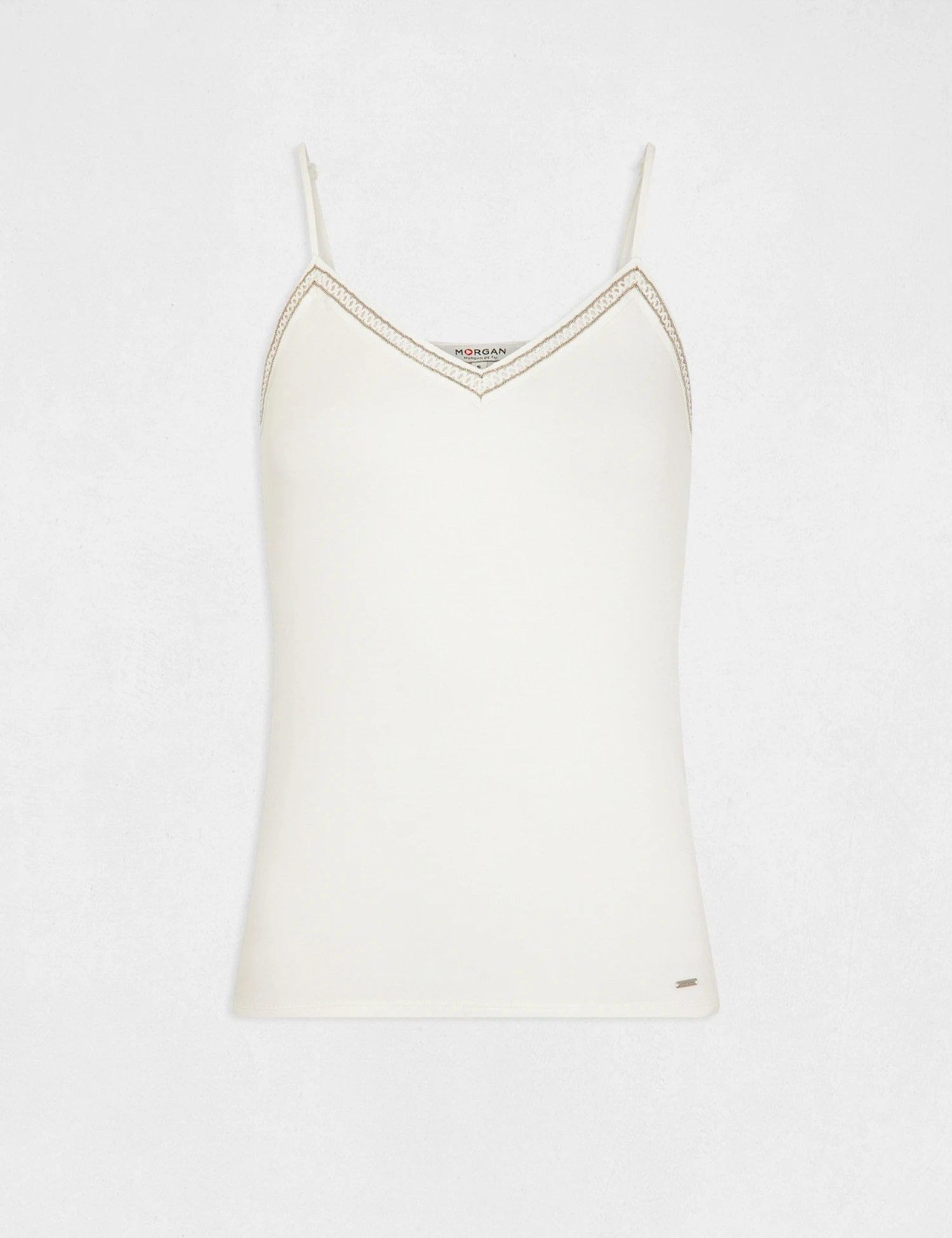 Débardeur Bretelles Fines Col En V Ecru Femme