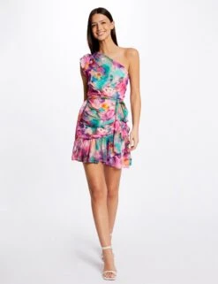 - Robe ajustée drapée asymétrique imprimée