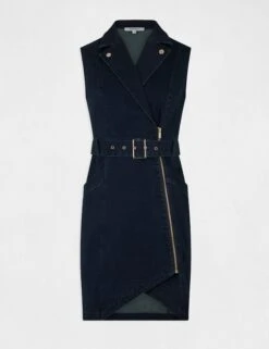 - Robe ajustée drapée sans manches en jean