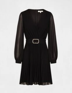 Robe Droite Fluide Avec Bas Plissé Marine Femme