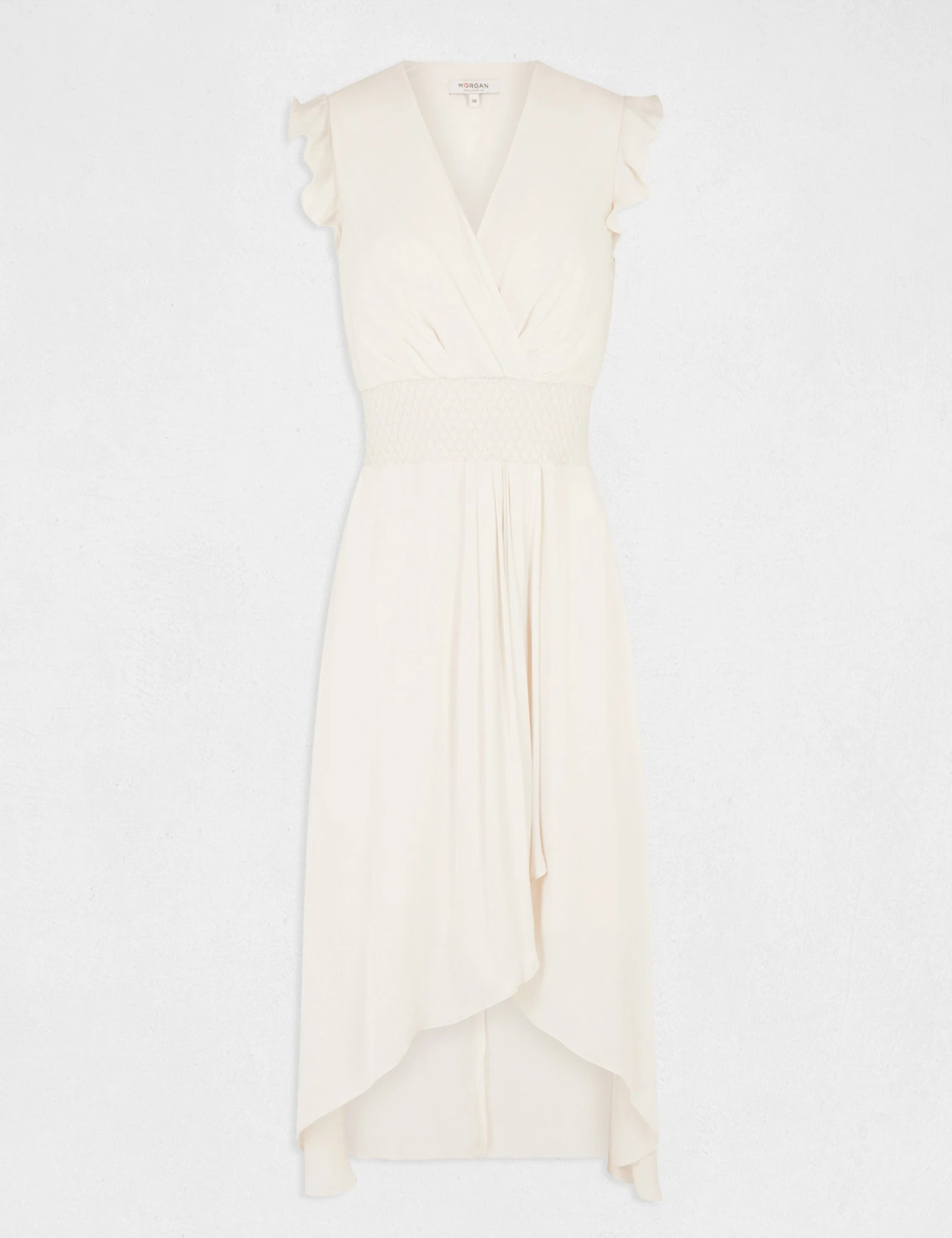- Robe midi évasée fluide drapée smockée