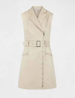Robe Portefeuille Zippée Ceinturée Beige Clair Femme