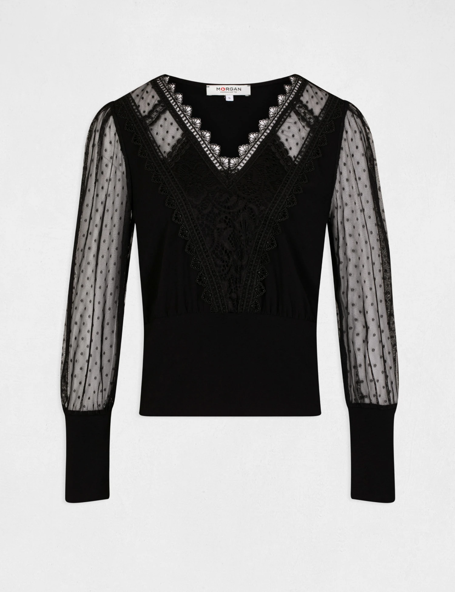 Empiècements dentelle avec bord festonné à l¿encolure et sur le buste